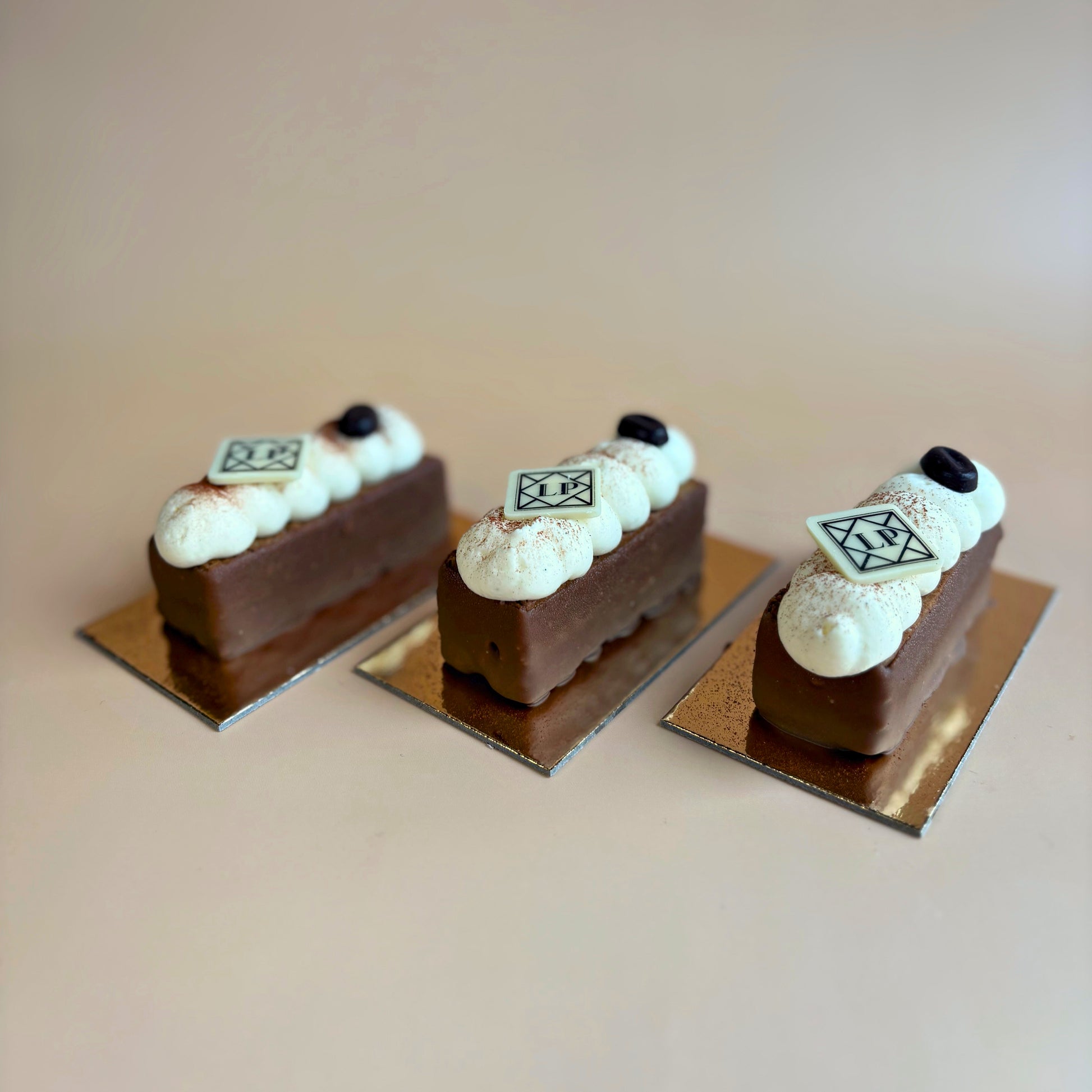 Delicate almond sponge, coffee mousseline and chantilly.