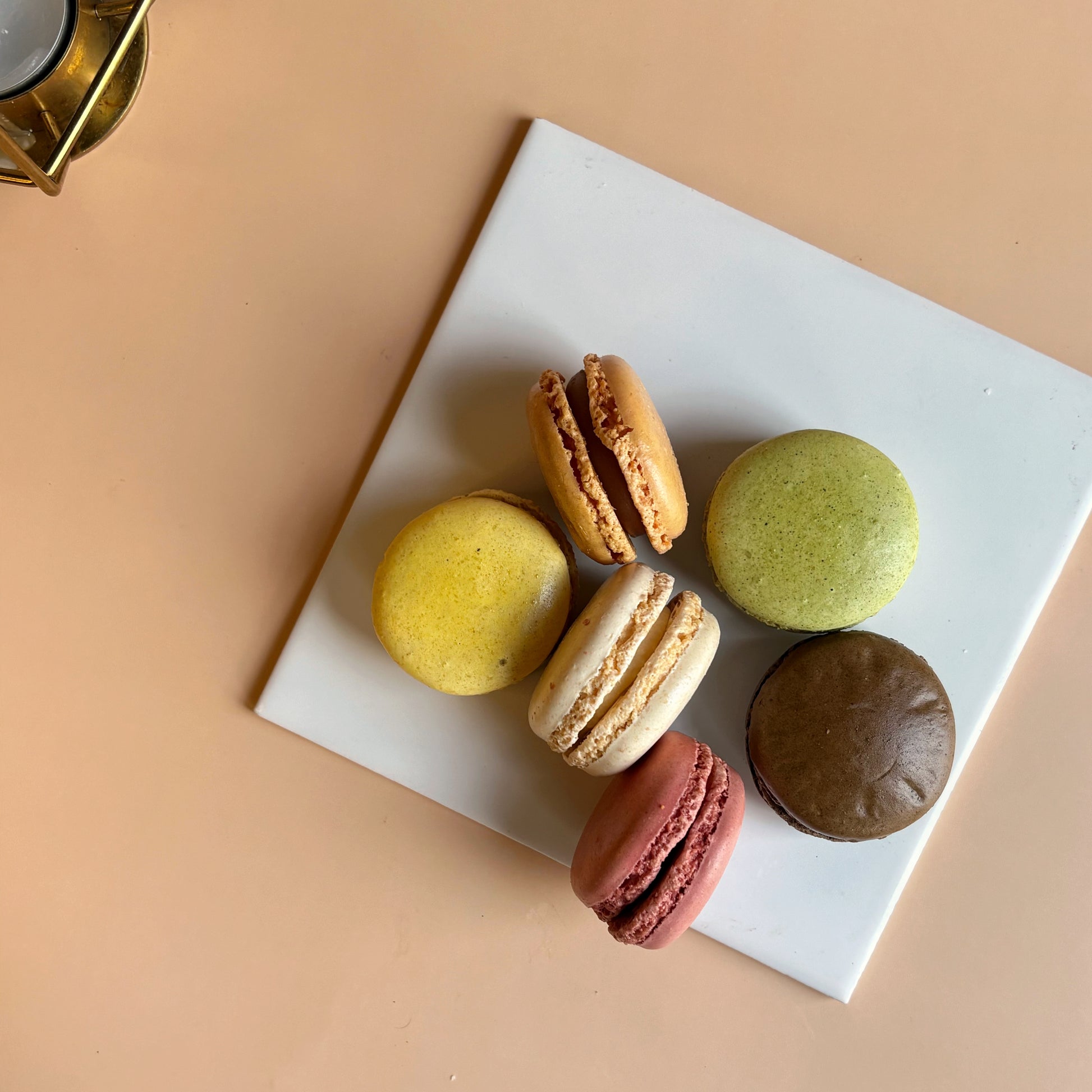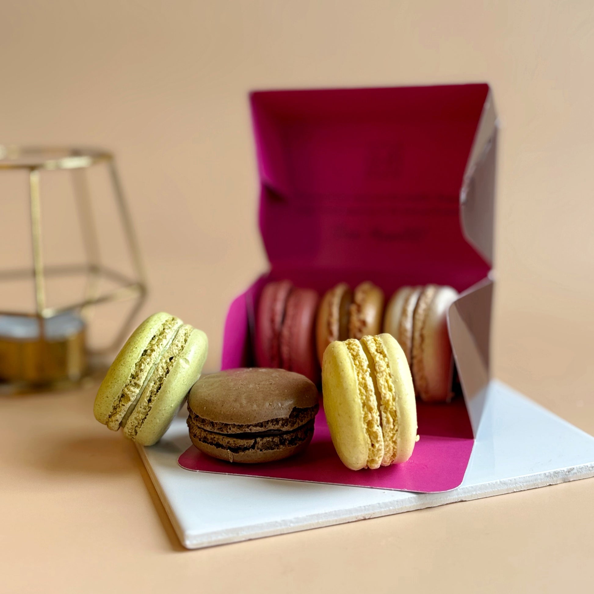 Light and crisp almond meringue shells with a soft, chewy center, filled with flavoured ganache or buttercream.
